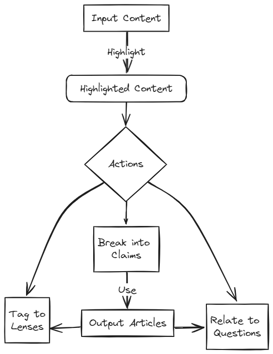 Hopefully I can figure out a simple way to explain how this site works.. how I intend to process information from input to output, etc.